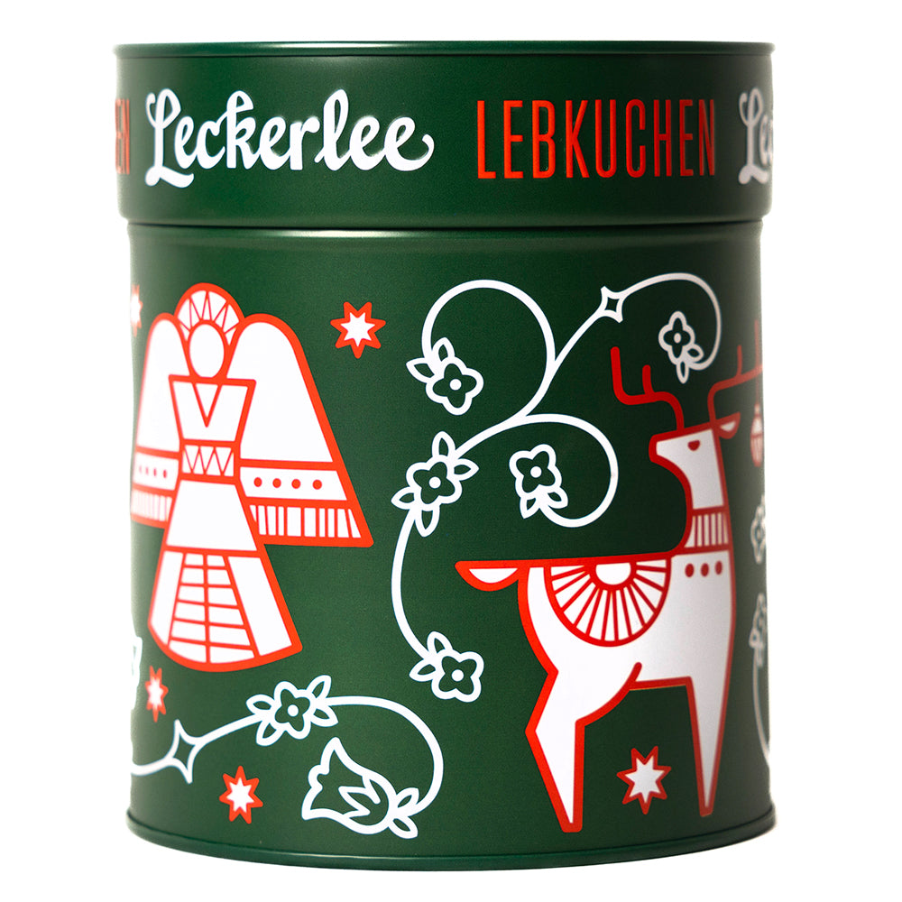 While many gingerbread tins focus solely on the cookies, ours are also collectible pieces of holiday art. Each year we release German cookie tins with limited-edition designs created in collaboration with the design studio Strohl.